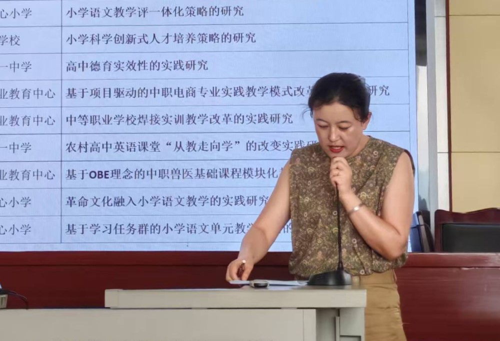 会上,宽甸下露河学校胡万利、宽甸镇中心小学刘萍、宽甸教师进修学校赵鹏、宽甸第一高中唐银康、宽甸职教中心王莹、宽甸职教中心孙玉良、宽甸第一高中纪德利、宽甸职教中心刘曾琦、宽甸镇中心小学张成月、宽甸镇中心小学耿琪等10位课题负责人分别从课题研究目标、研究内容、拟采用主要策略和措施等方面对各自开题报告进行详细的阐释和说明。各课题组基于新课标背景,密切联系教育教学实际精准选题,开题报告论述有据,详细明确,充分展现了各课题组扎实的科研基础和清晰的研究思路,凸显了我县近年来教育科研工作的培训成果和引领实效。