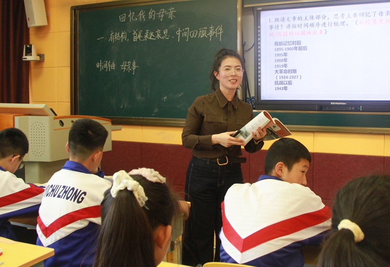 本次决赛中,24位参赛青年教师深入研读新课标,力求准确把握学科核心素养。在语文学科《回忆我的母亲》教学中,四位教师虽同题授课,却呈现出多元视角:有的聚焦细节描写,引导学生体会情感表达,并通过随堂练笔即时检验学习成效;有的注重写作手法,在探究文学魅力的同时,设计分层评价标准考查学生的理解深度。