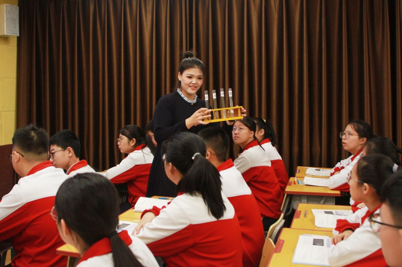 本次大赛创新采用"课堂教学展示+课标答辩"的双环节赛制,其中课堂教学占90%,课标答辩占10%。在具体实施中,参赛教师需在赛前通过抽签随机确定授课班级及课标答辩题目,这一安排进一步增强了比赛的实战性与挑战性。双环节设计既检验教学实践能力,又关注课程理解深度,体现了"理论与实践并重"的评审理念,旨在全面考察教师的专业素养。本次采用双环节赛制也向全县初中教师传递了一个明确信号:新时代的优秀教师必须是理论与实践兼备的专业人才。这种导向将深刻影响学校的教研活动开展方式,推动教研活动从传统的"听课评课"向"研课辩课"转变。